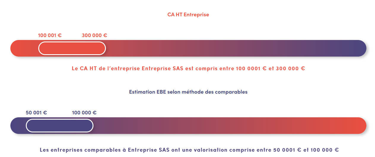 L'estimation de votre entreprise gratuite donne un prix selon la méthode des comparables. L'IA travaille par le code APE et ensuite regarde sur quelle tranche de chiffre d'affaires se situe votre entreprise.